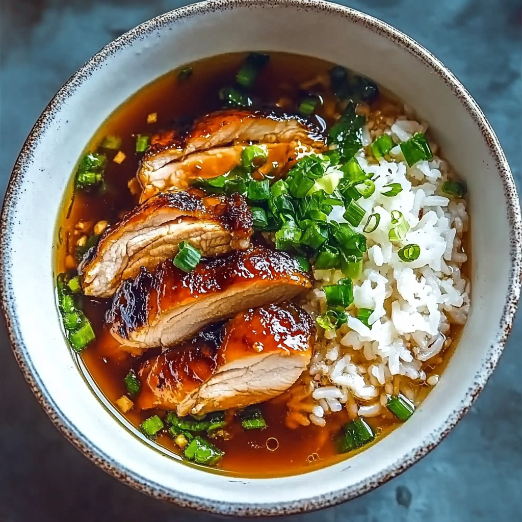 Caramelised Soy Chicken in Garlic Ginger Broth with Rice