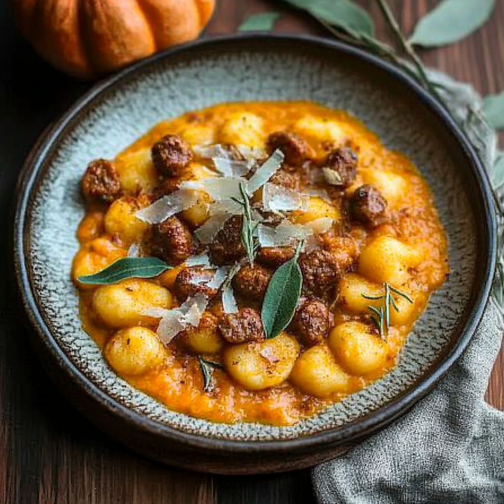 Crispy Gnocchi and Sausage with Creamy Pumpkin Sauce