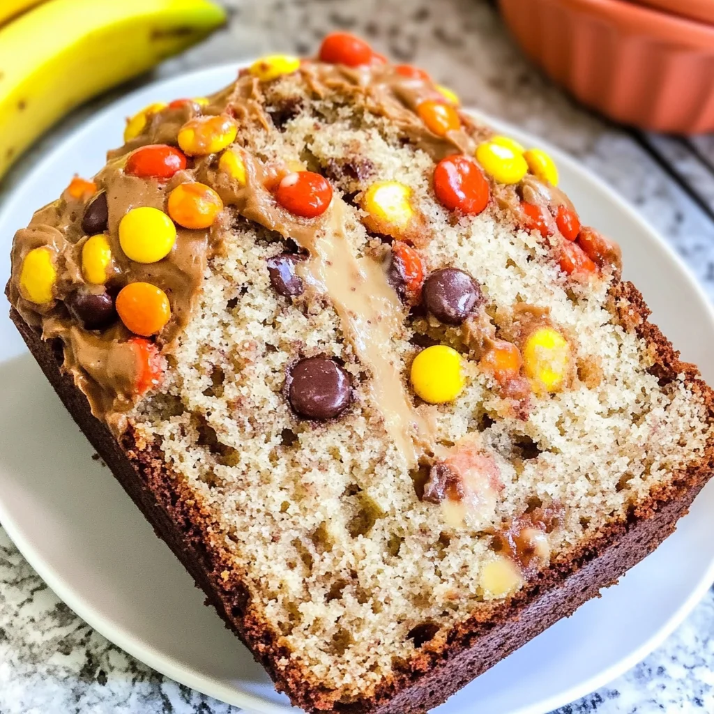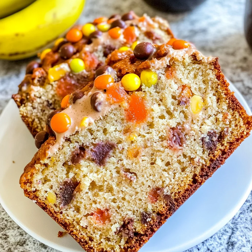 The addition of Reese’s Pieces adds a fun crunch and sweetness that elevates this banana bread beyond the classic version.