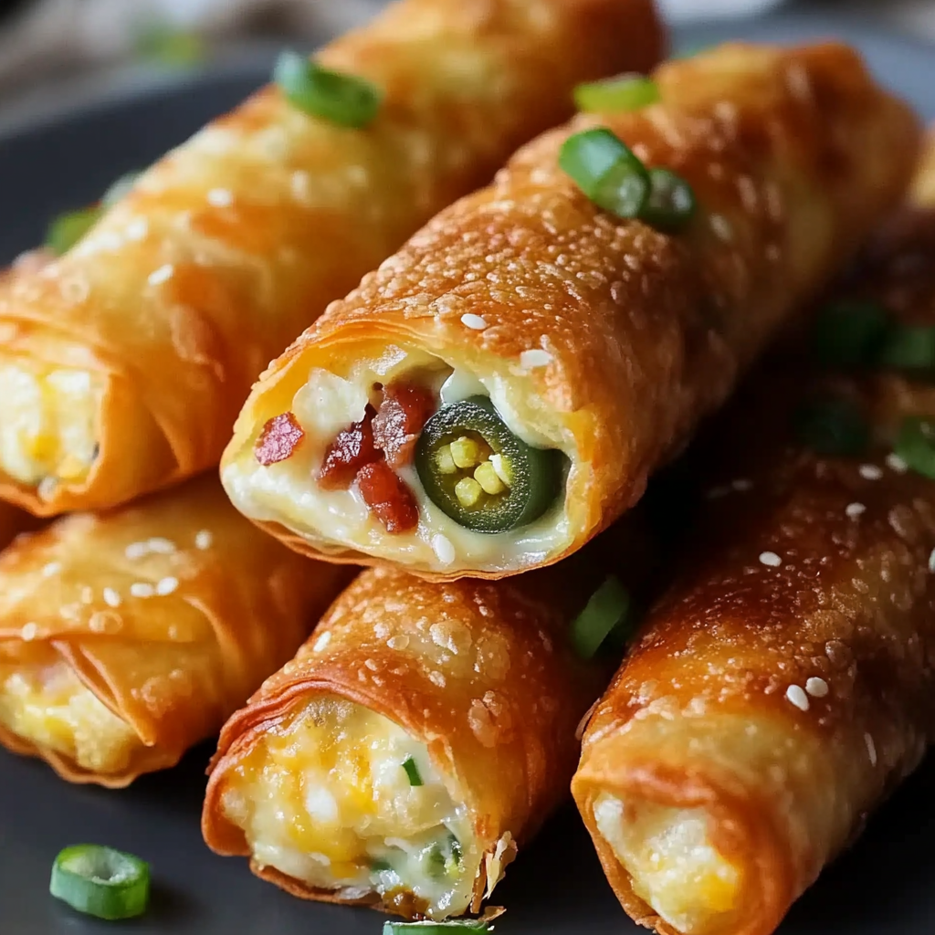 Turkey Bacon Jalapeño Eggrolls are delicious appetizers that combine turkey bacon, jalapeños, and creamy cheese wrapped in crispy eggroll wrappers.